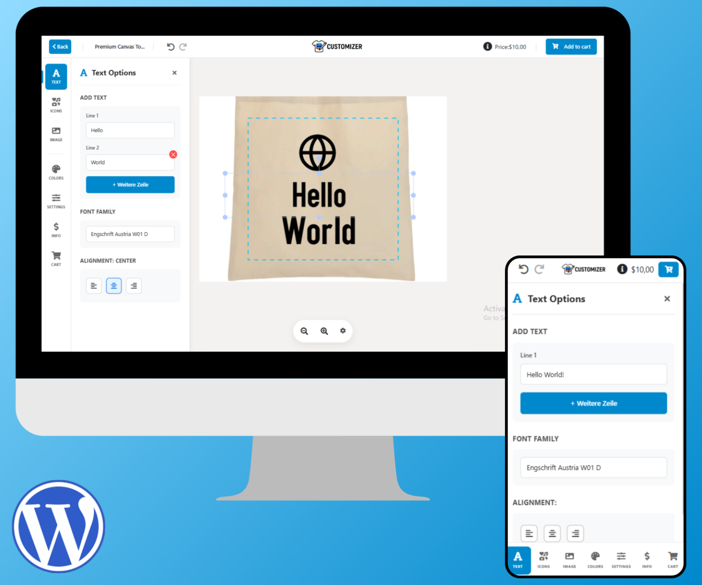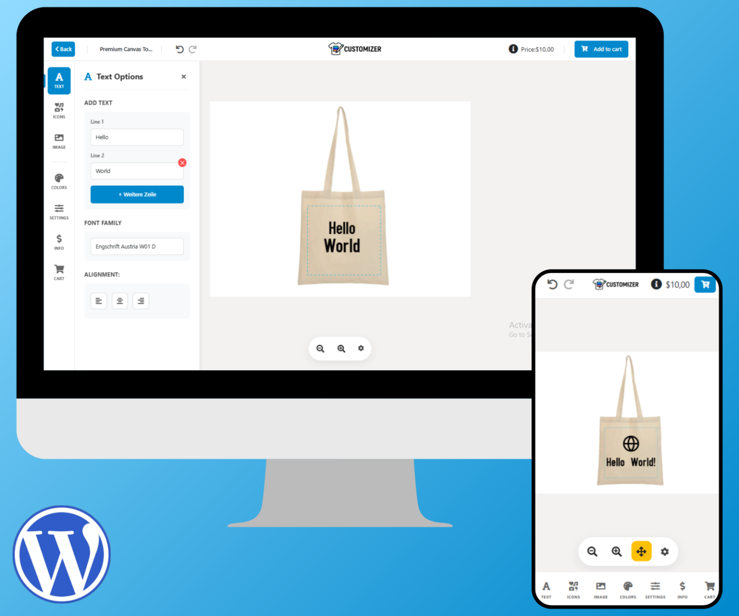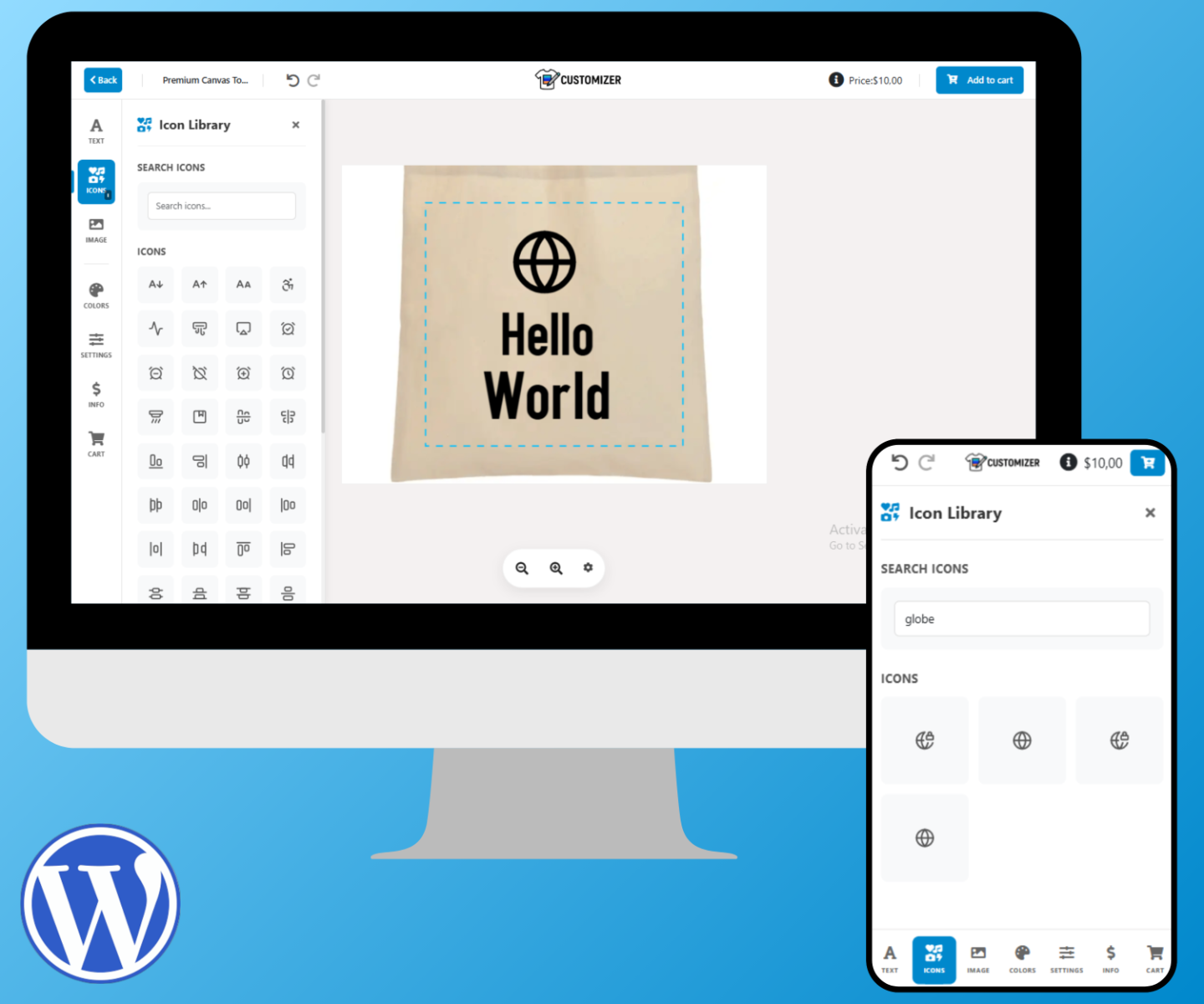 With a clean layout, smooth drag-and-drop controls, and a fully responsive interface, customers can personalize any product with text, icons, images, colors, and more while seeing every change instantly.